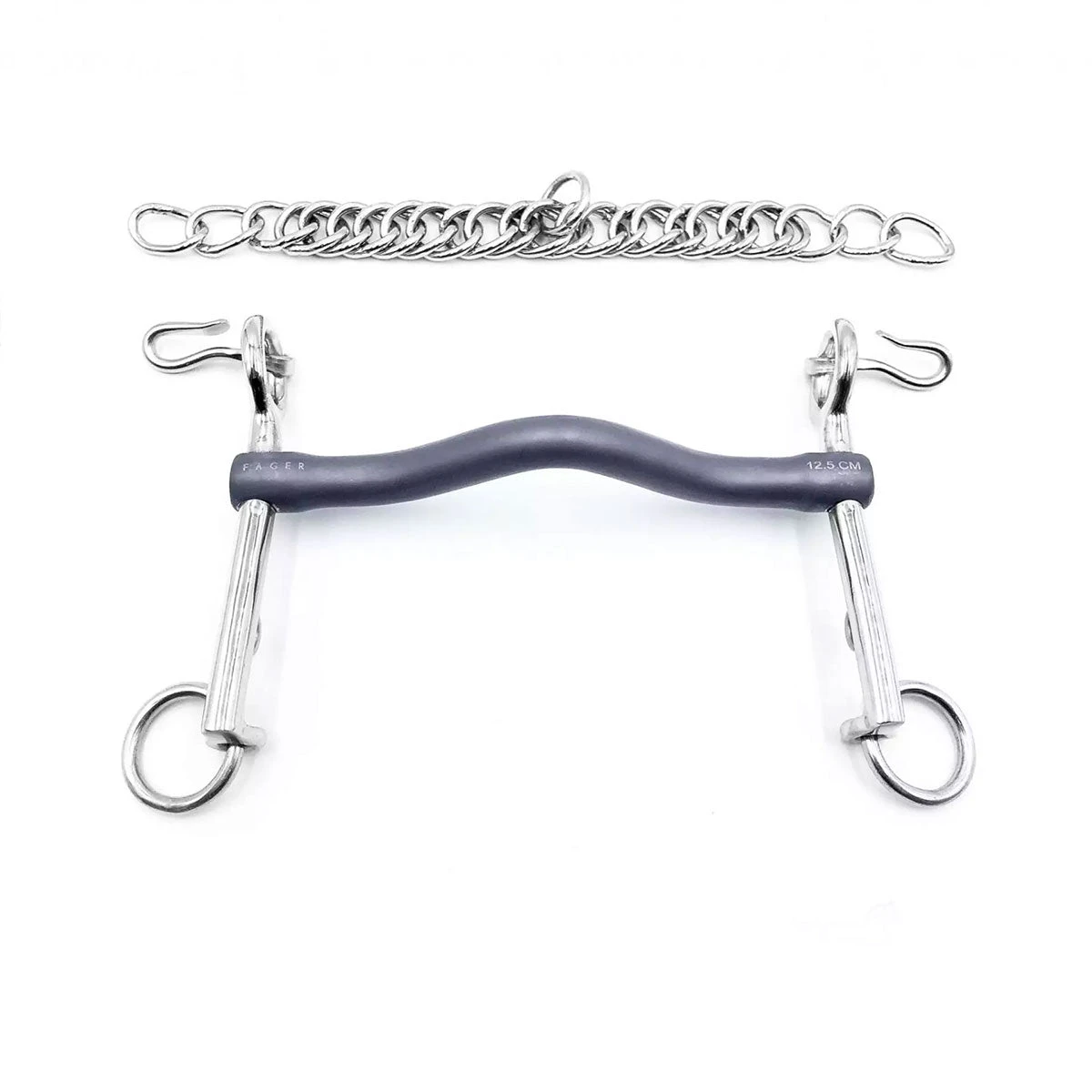 The Fager Sofia Titanium Weymouth Bit- 5cm features a lightweight anatomical straight titanium mouthpiece with a 5cm shank. The Sophia’s forward tilted high port allows both additional freedom for the tongue as well as more space for the bradoon. This incredibly lightweight design ensures complete comfort for the horse. Fager bits are created in collaboration with veterinarians, offering a forward-thinking approach in order to create revolutionary design to accommodate differing horse anatomy. This thoughtful process puts the comfort and wellbeing of the horse at the forefront of every Fager bit design.