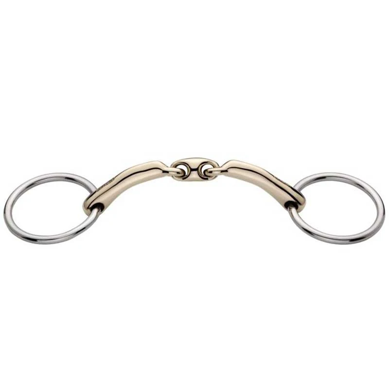Herm Sprenger Novocontact Double Jointed Bradoon is designed to create a unique oval shape which widens the contact surface on the tongue while the rider keeps a steady contact. As the rider gives a rein aid the mouthpiece turns forward and the contact surface gets narrower, ensuring more precise and effective communication. Ideal to use on horses that occasionally tend to pull against the hand, but are too sensitive to be ridden with stronger bits